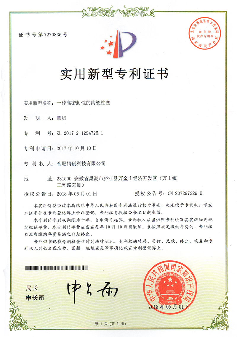 (2018實用新型)一種輕質陶瓷柱塞
